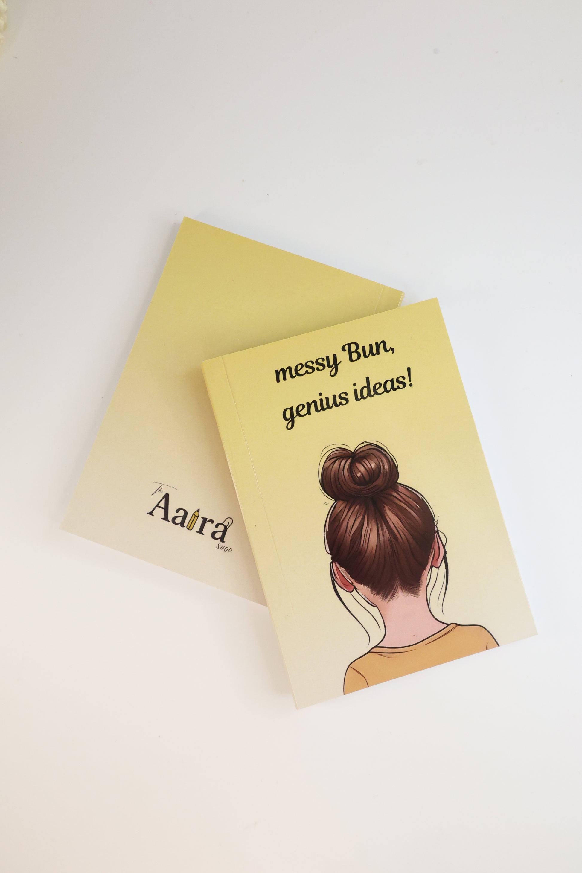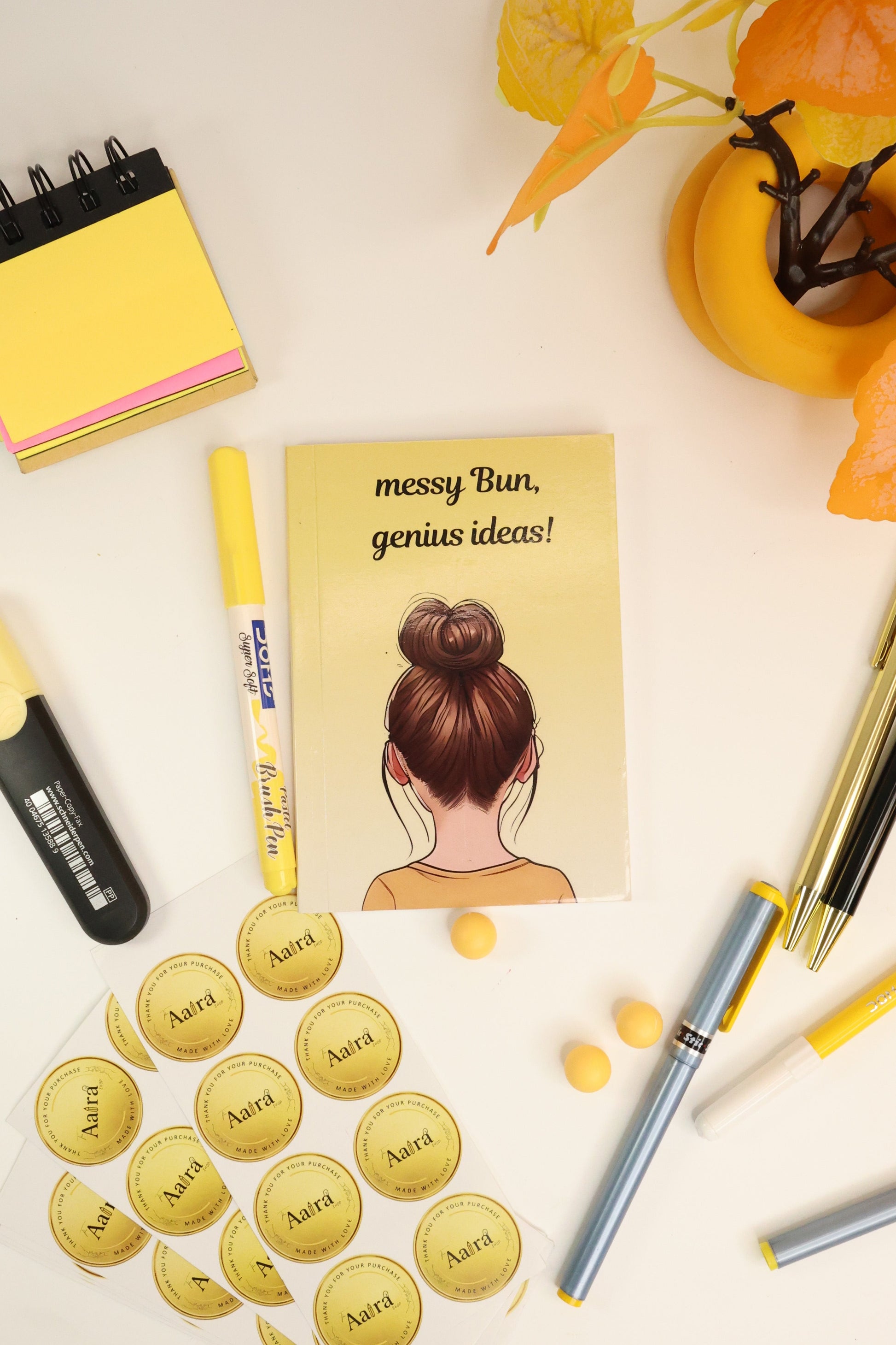 Meet Aaira's Idea Book, the pocket-sized manifesto for every busy, brilliant mind. Inspired by the idea that the best thoughts often arrive during the busiest, most unstructured moments, this notebook features the empowering phrase "messy Bun, genius ideas!"