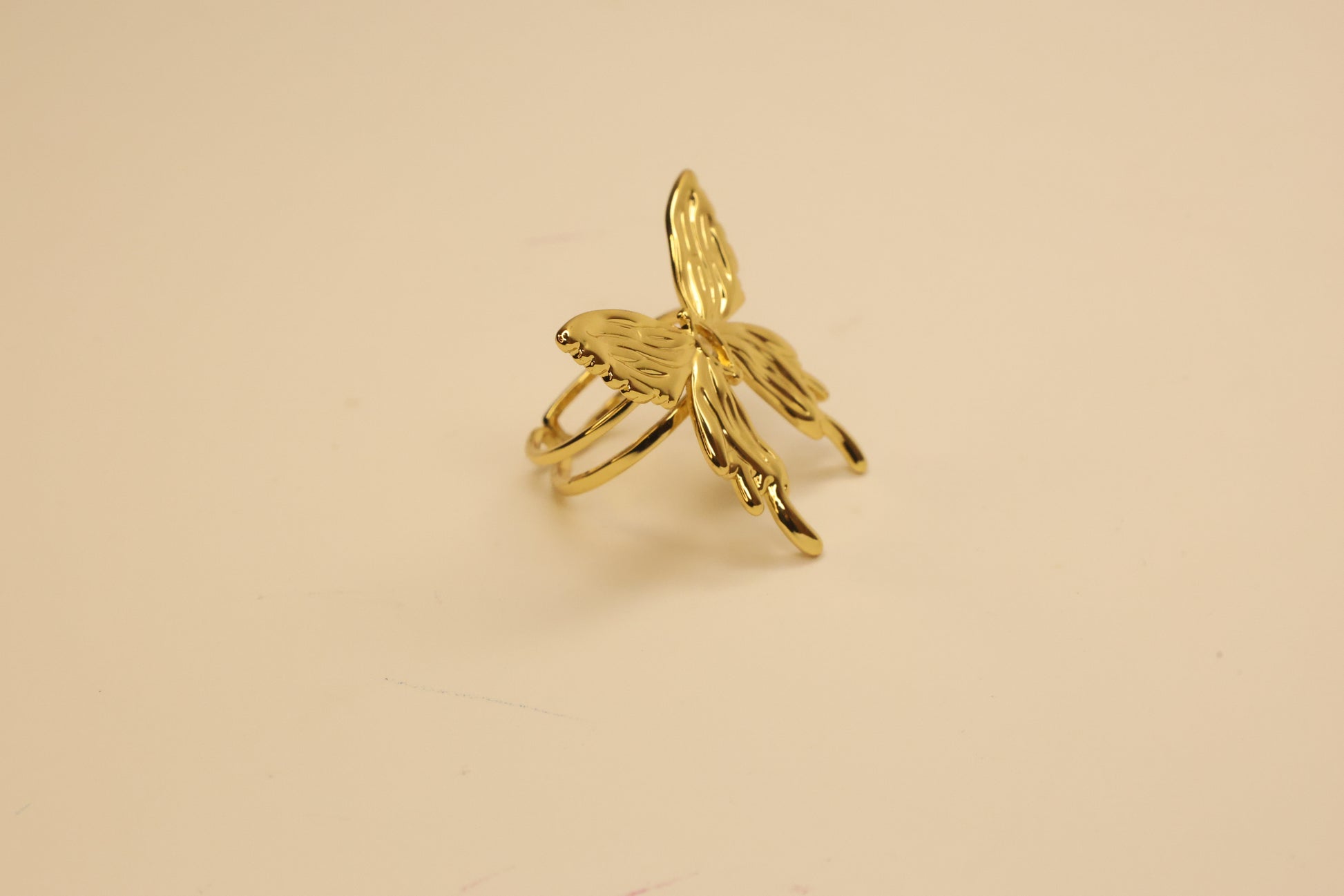 Unveil your true potential with The Metamorphosis Ring from Aura by Aaira. This breathtaking statement piece captures the ultimate symbol of transformation: the butterfly. The design features sculpted, flowing wings that seem to lift off the finger, creating a bold, three-dimensional silhouette that embodies grace, freedom, and personal growth.