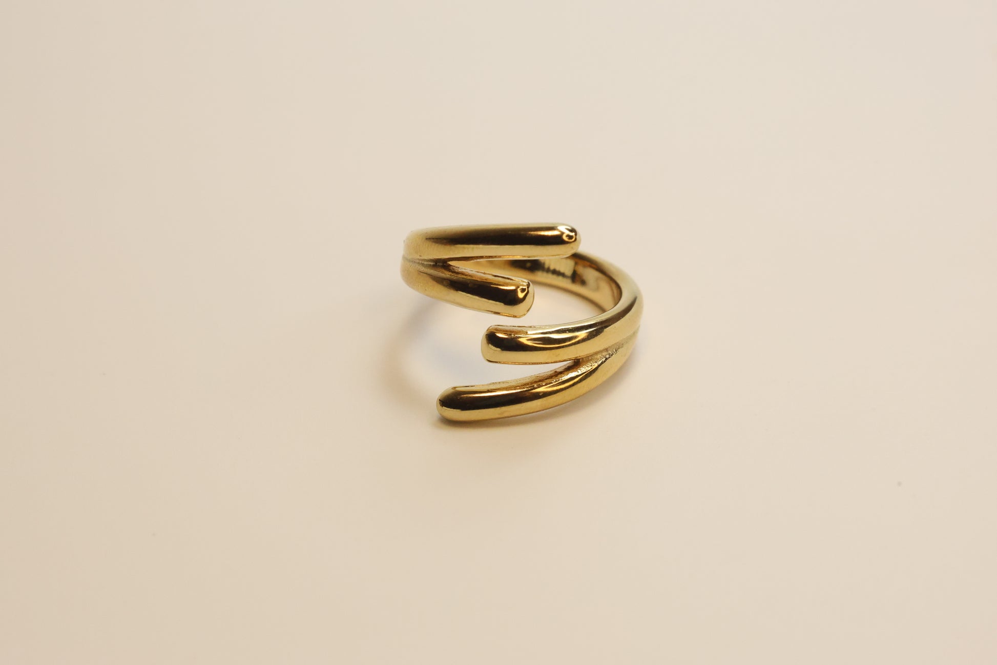 Introducing The Nexus Ring from Aura by Aaira—a piece where modern design meets timeless elegance. Its bold, open-coil structure features two highly polished lines that gracefully converge and separate, symbolizing the connection between inner peace and outer expression.