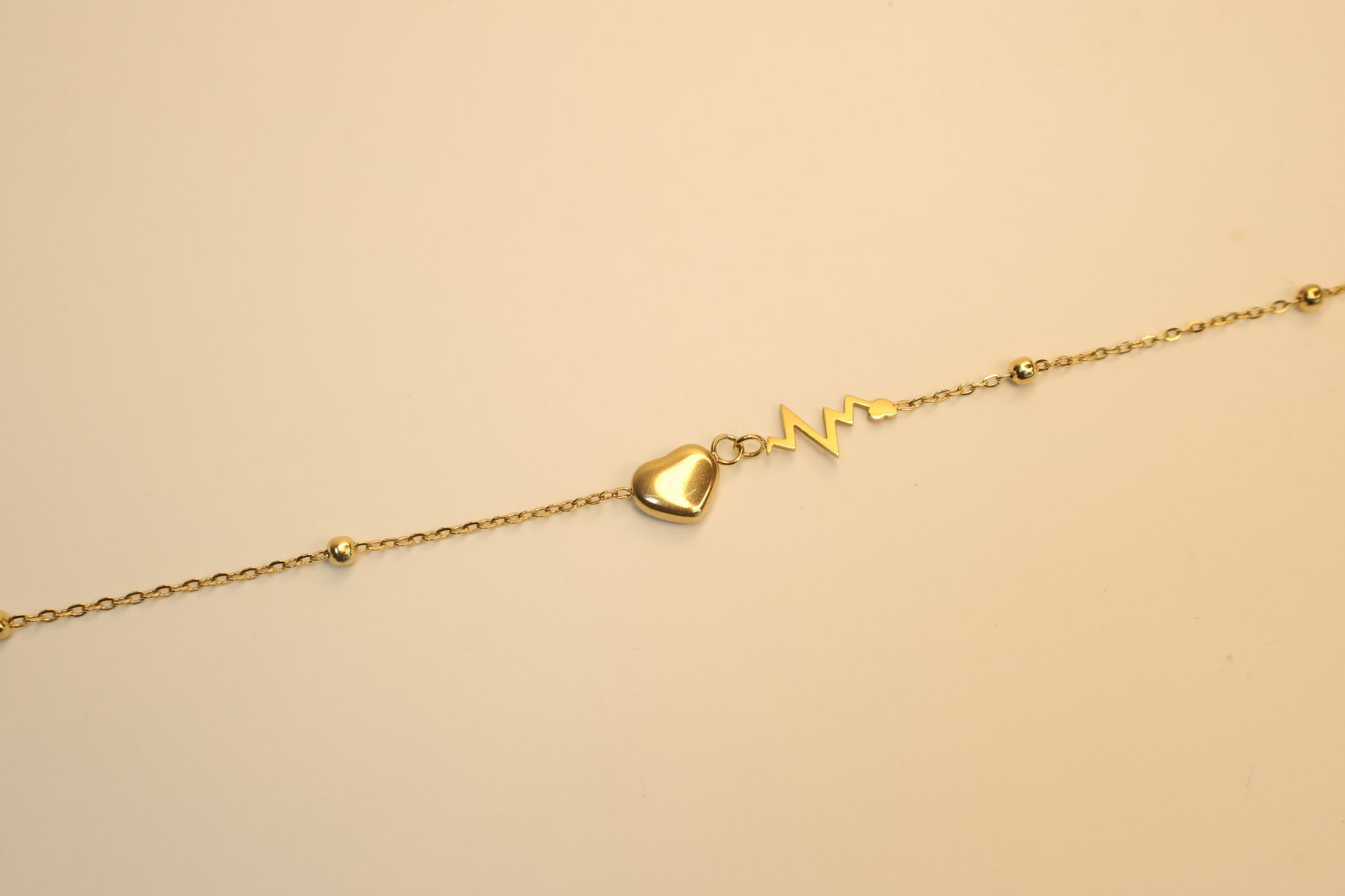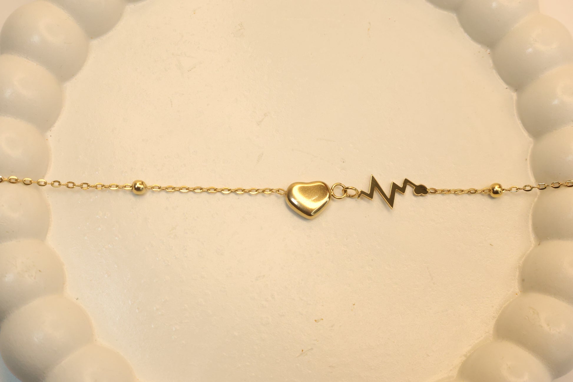 Celebrate the life and love that makes your heart beat with The Pulse of Love Bracelet. This profoundly symbolic piece features a delicate, gold-tone bead chain centered around two interconnected icons: a smooth, polished Heart and a bold, graphic ECG/Heartbeat Line. It’s a beautiful and modern way to express affection, vitality, or a deep, vital bond with someone special. Perfect for healthcare workers, loved ones, or anyone who cherishes life's most essential connections.
