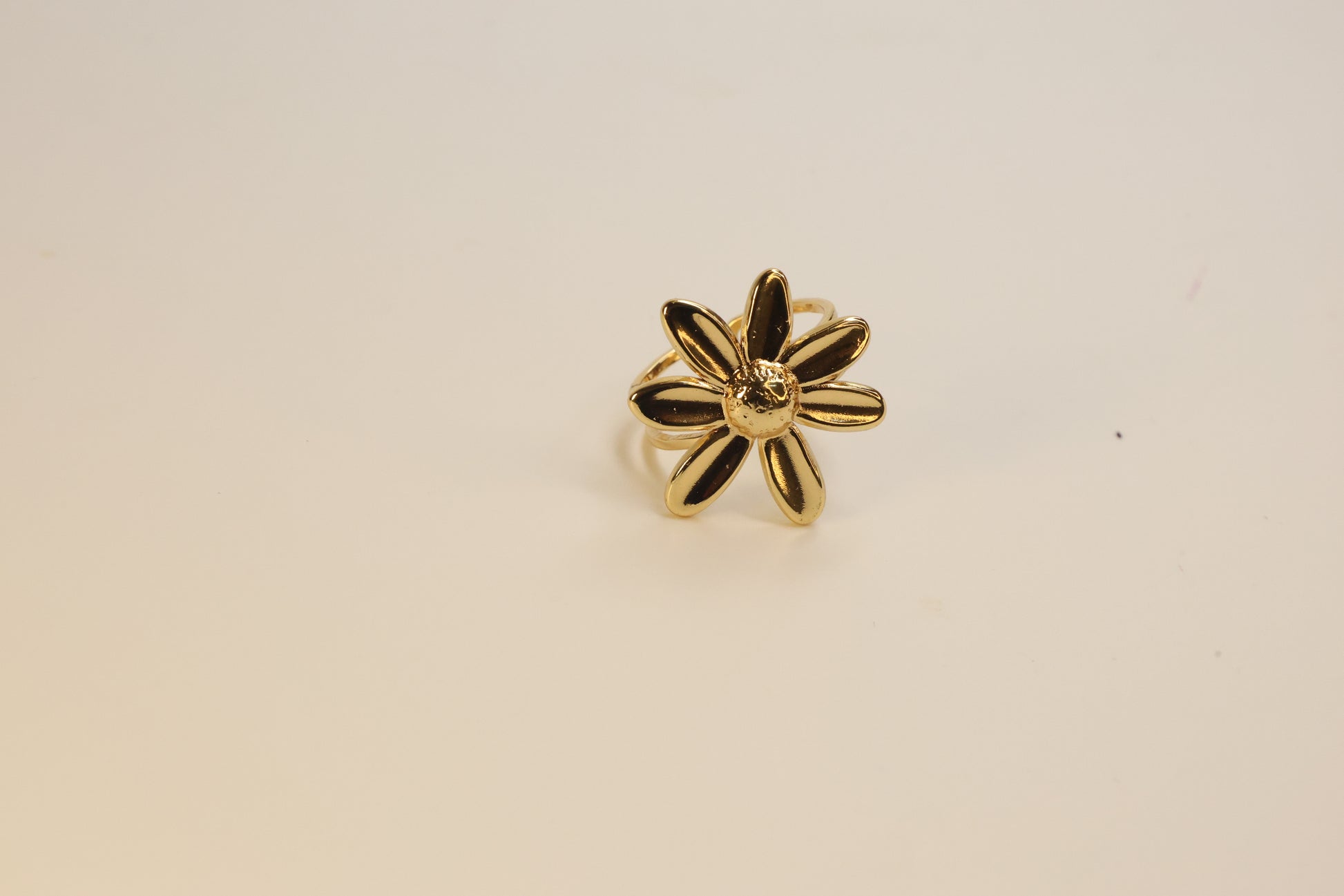 Illuminate your look with The Solstice Flower Ring from Aura by Aaira. This stunning piece captures the vibrant, symmetrical beauty of a flower at its fullest bloom, symbolizing vitality and light. Its distinct, clean petals radiate outward from a central dome, creating a delicate yet defined silhouette that is impossible to ignore.